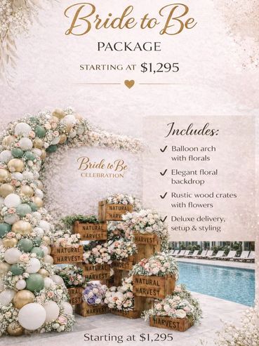 Includes custom color palette, professional installation, high-quality balloons, and design consultation. Final pricing is based on size, delivery location, and design complexity.